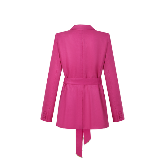 Upcycled Pink Linen Blazer with Jade Belt Detail