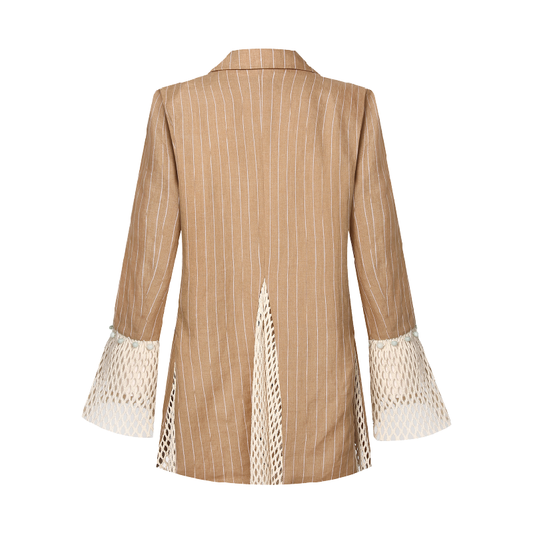 Sustainable Khaki Blazer with Jade Accents and Breathable Mesh