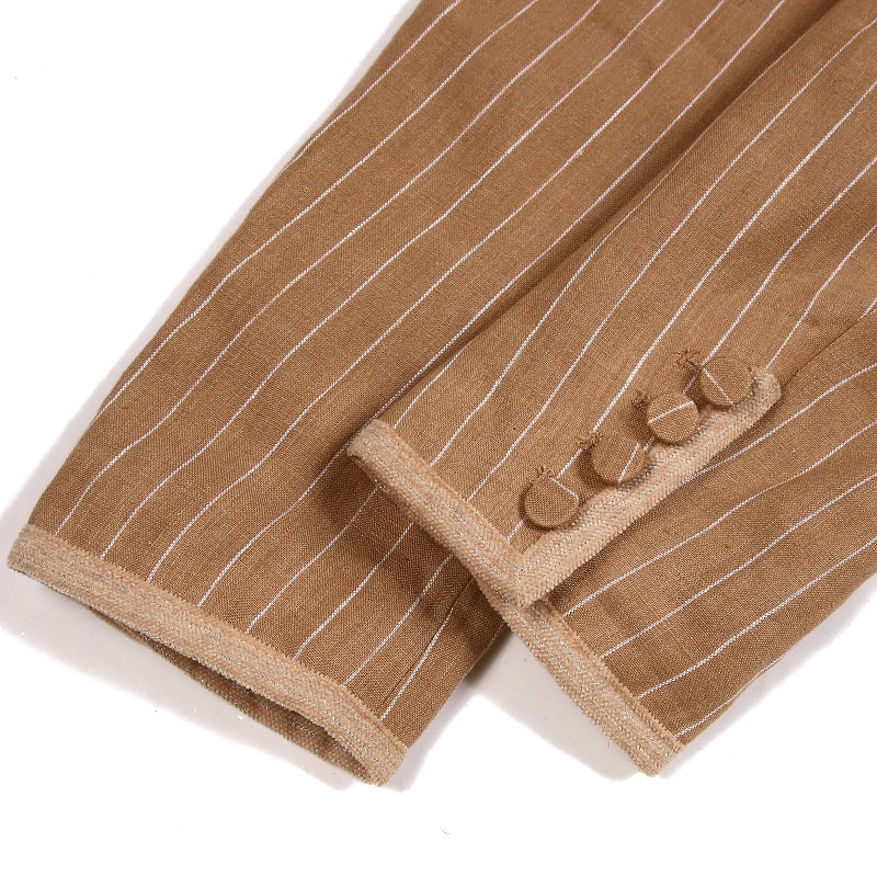 Not at all. The khaki base is neutral, and the subtle silver-edged stripes add just a touch of shine. You can easily pair it with jeans, trousers, or skirts in classic colors like black, white, or beige for both casual and professional looks.