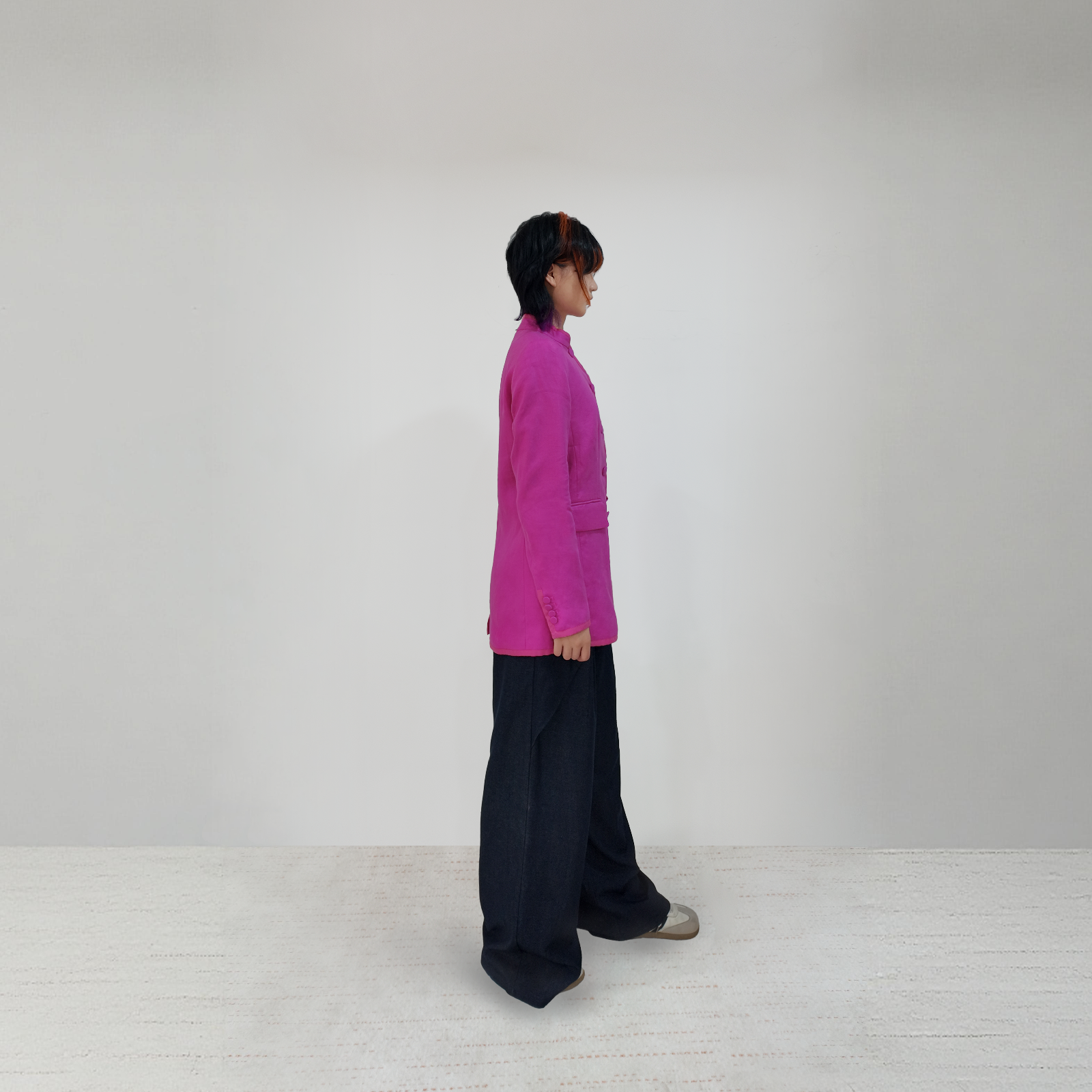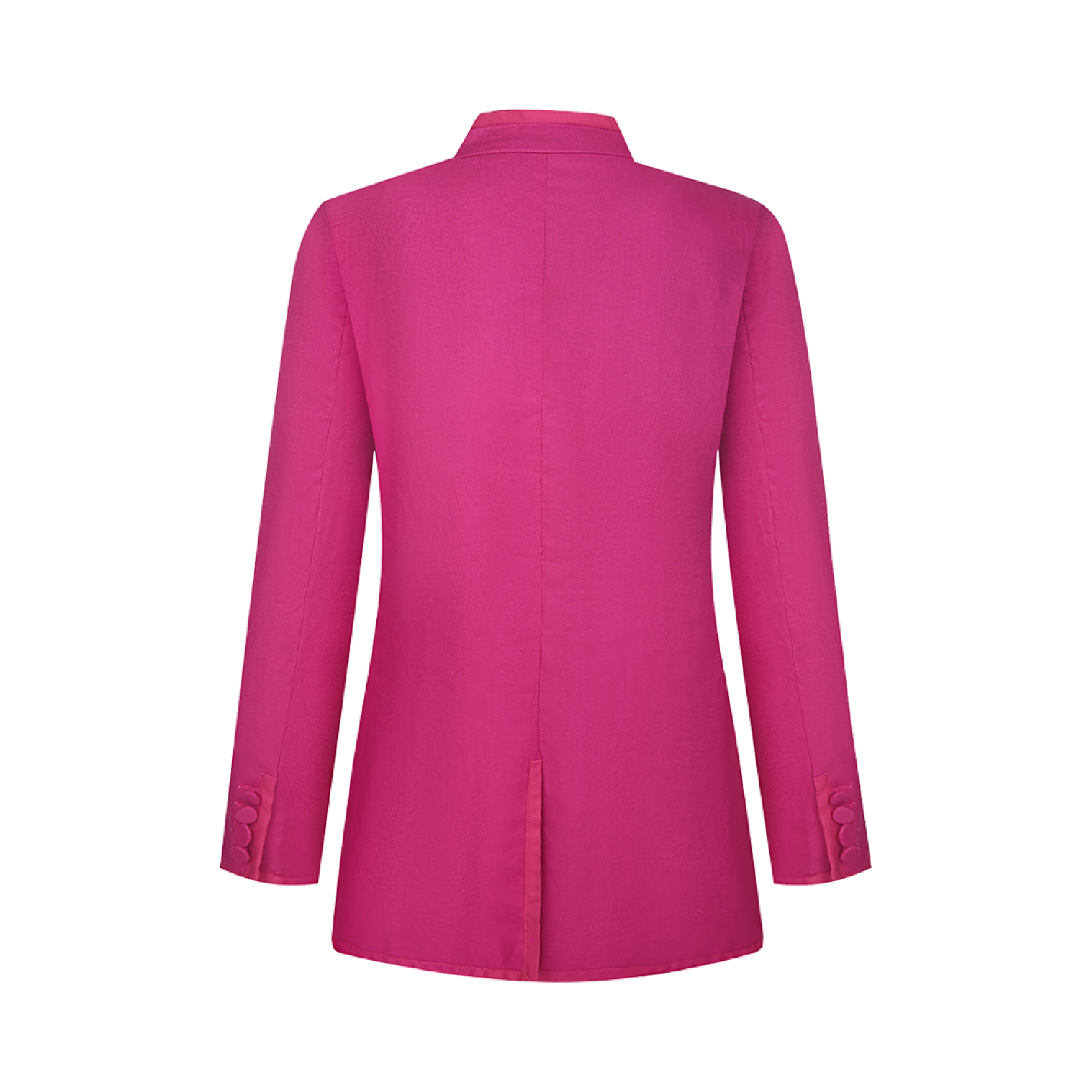 Pair it with tailored trousers or a pencil skirt for a polished office look, or with jeans or casual pants for a chic everyday outfit. The stand-collar and refined trim elevate any ensemble while keeping the focus on the vibrant rose red color.