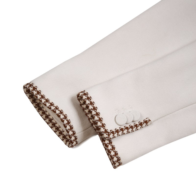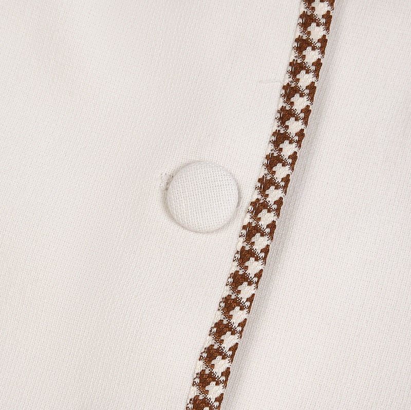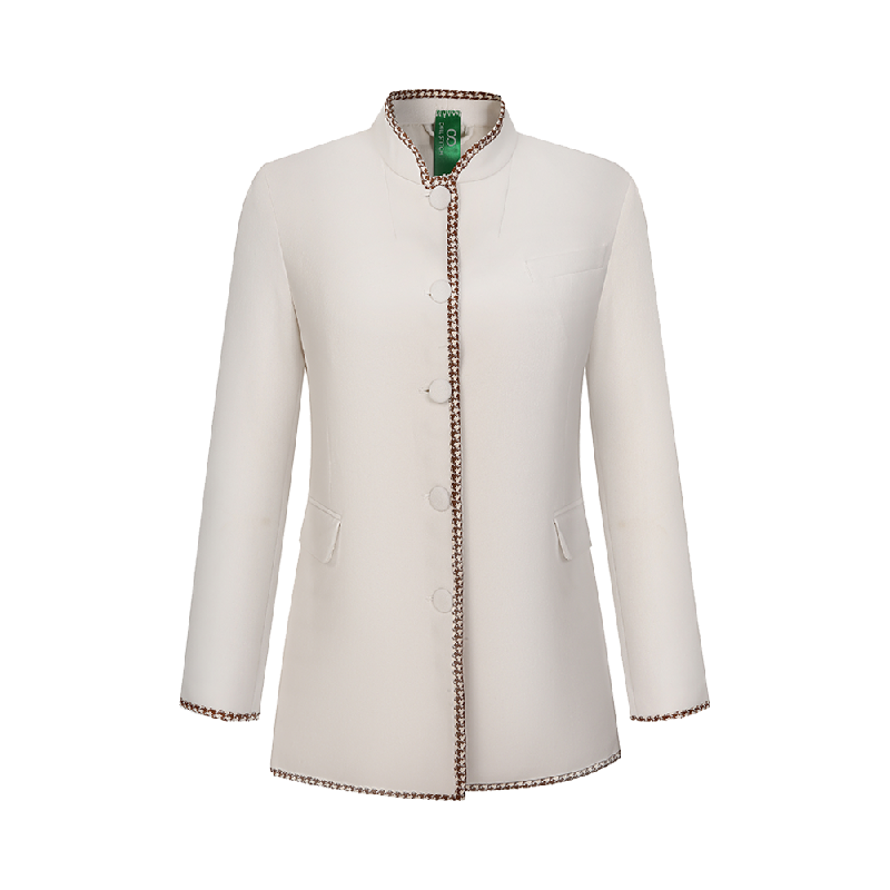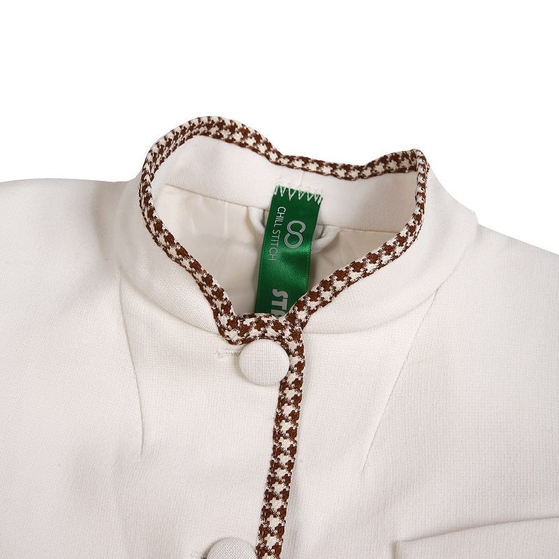 Keywords: upcycled white knit jacket, sustainable knit blazer, stand-collar knit jacket, vintage-inspired knit outerwear, women’s eco-friendly knit jacket